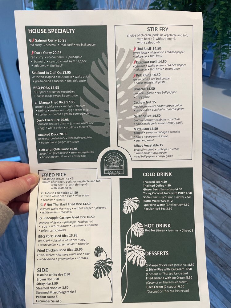 Guests can indulge in a variety of noodle and fried rice dishes, such as the iconic Pad Thai and Pad See Iew, both expertly crafted with fresh ingredients. The aromatic Tofu with Thai Basil provides a scrumptious vegetarian option, while the BBQ Pork Bowl entices with its savory barbecue flavors.